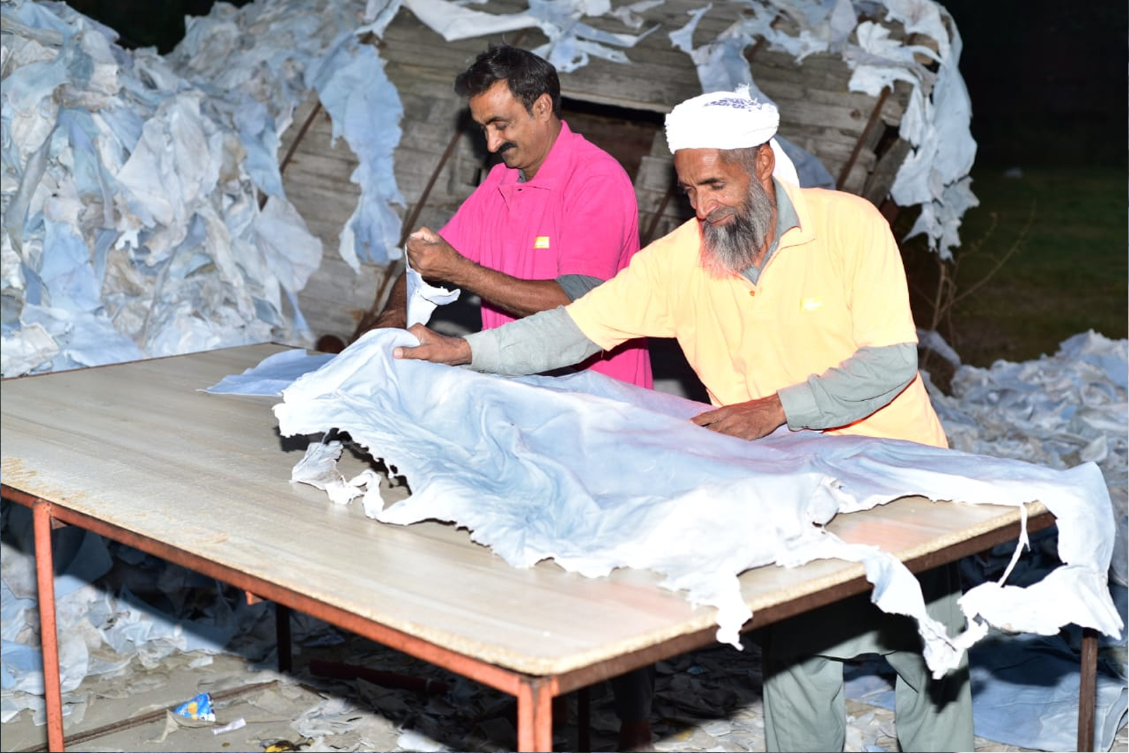 WE ARE A WELL AQUPIED WITH LATEST TANNING MACHINARY AND CUTTING AS WELL AS STITCHING. WE PRODUCE OUR SELVES IN TANNERY HIGHEST LATEST TECHNOLOGY GOAT SKIN WATER PROOF ,OIL RESISTANCE LEATHER, 3M FR THERMAL LEATHER, GRAIN LEATHER FOR DRIVER GLOVES, DYED COW SPLIT LEATHER FOR WELDING AND WORKING GLOVES, CHROME 6, EZO FREE LEATHER FOR APRONS AND COMPLETE LETHER BODY PROTECTION.