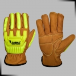 Complies with the requirements of CE type examinations EN 388-2016 EN 42021 for tanning chemical material leather ph , sizing, tear resistance, puncher resistance, abrasion resistance EN407 for thermal heat and fire flame, Ansi cut resistance, ansi puncture resistance, ansi tear resistance, ansi abrasion resistance, ANSI/ISEA 138-2 and ansi heat resistance
